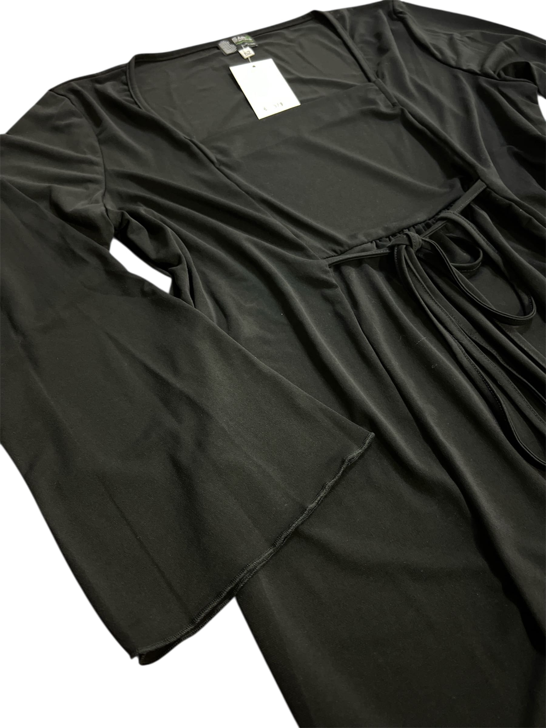Shirt nera con scollo quadrato e fiocco.